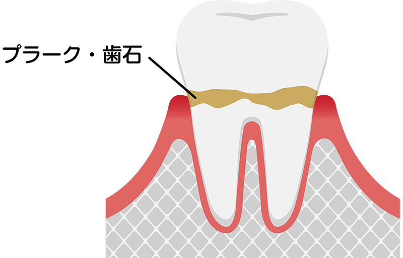 歯周病の主な原因は、口腔内にプラーク(歯垢)と呼ばれる細菌の塊が作られ、そのなかに含まれる歯周病菌が繁殖してしまうことです。バイオフィルムとも呼ばれており、舌や指でなぞるとヌメヌメとした感触があります。磨き残しが増えると、歯垢が歯石として石のように固くなり、表面に開いている無数の小さな穴に細菌がさらに付着し、歯周病が悪化するリスクが高まります。